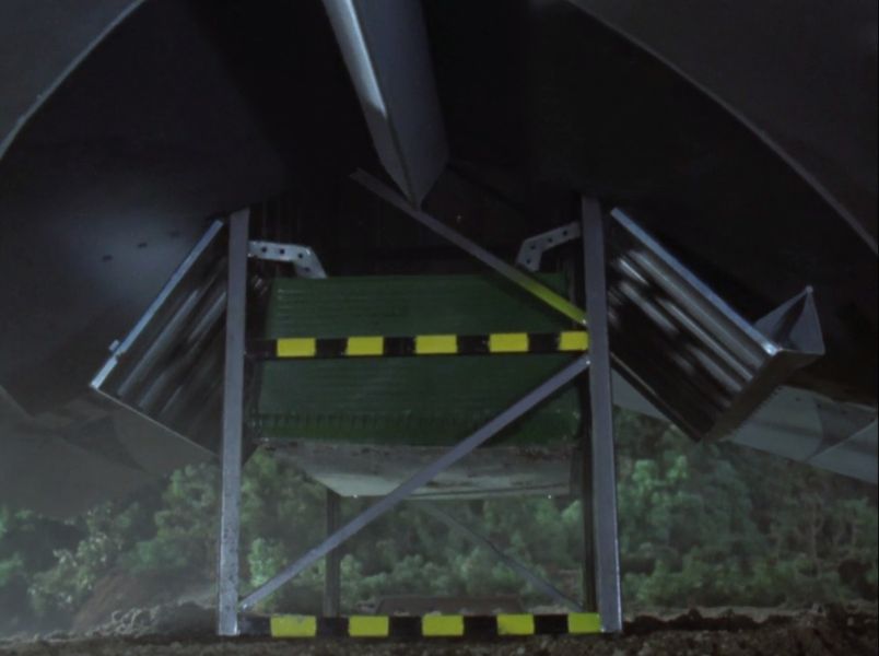 25mのマグマライザーが18mのホーク3号に搭載されて運ばれると言う無茶苦茶な映像マジックの事はさておき、前回と今回では輸送コンテナの降し方が違っているのをご存知でしょうか?
