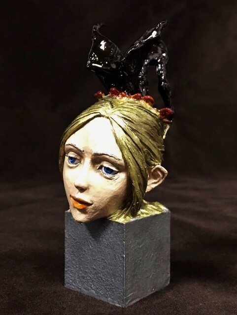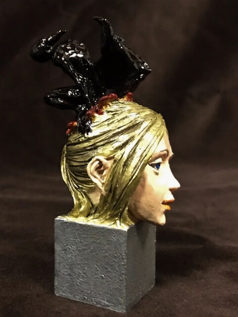 どういうシチュエーションなのか解りませんが、若い女性の頭部からニャルラトホテプが這い出してるというかなりショッキングで気色の悪い構図ですねェ~