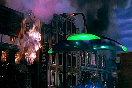 H.G.ウェルズの原作では三本脚で歩行する戦闘マシン『トライポッド』でしたが、ジョージ・パルの映像作品では有機的なフォルムをした空飛ぶ円盤でした。
