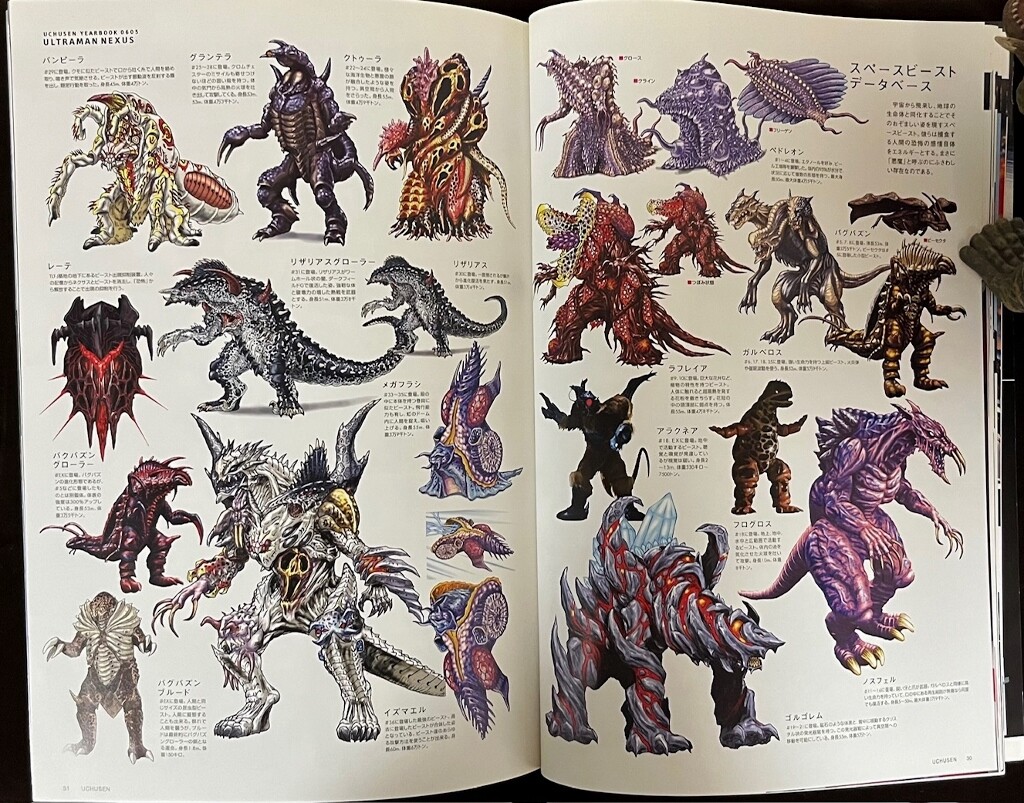カラーページではキャラクターやメカの写真や登場する怪獣・怪人のデザイン画…モノクロページでは放映リストやキャスト紹介、番組のコンセプト等が完結に説明されていて、特撮・怪獣ファンとしてはめちゃ重宝する資料集でした。