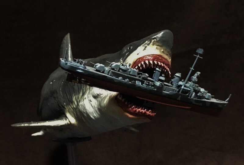 さすがにアイオワ級を飲み込むのはやりすぎだと思うので、米国の駆逐艦を咥えさせてみました。