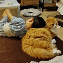 このごろ、家来が傍若無人になってきて今日もおいらを枕代わりにしてるニャめっちゃ重たいけどがまんしてるニャこの理不尽いつまで続くのかニャ~これはきっとベビーハラスメントだニャ ...